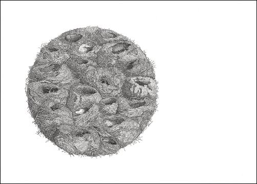 | Depuis plusieurs années, Fabienne Houzé-Ricard dessine ou peint des nids et des oiseaux morts. Les deux extrémités d’un cycle de vie… Après nous avoir livré, en 2016, une série d’oiseaux morts, saisis avec un réalisme stupéfiant, elle est de retour et nous propose, en parallèle avec des portraits d’oiseaux, de revenir aux sources avec un ensemble de nids. Ceux-ci, produits d’un savant entrelacement de traits nerveux, semblent révéler les affres du premier acte d’une inéluctable tragédie, celle du cycle de la vie et de la mort. Ils sont souvent de très grandes dimensions, résultant de gestes, quasi obsessionnels, de tressage et de tuilage qui rappellent ceux de l’oiseau construisant son chez-soi. On peut voir, dans cette lente stratification de lignes ou de petites surfaces créant un volume creux en réserve, une métaphore du processus mémoriel. Mais aussi de la lente élaboration de la personnalité et de l’identité, aussi diversifiées d’un individu à l’autre que le sont les formes et les structures des différents nids que l’artiste nous propose. Certains se voient dotés d’improbables racines, comme pour les ancrer dans une réalité qui leur fournit la capacité de croître et de se développer de façon autonome. On peut imaginer que, dans ces petites demeures apparemment inviolables, se pratique un culte domestique, très certainement celui de la propagation de la vie. Elles évoquent aussi un territoire d’importance vitale qui doit être défendu coûte que coûte, un refuge pour des espèces en danger, en voie d’extinction… Il y a un peu de tout cela dans les dessins que Fabienne Houzé-Ricard nous donne à voir et, probablement, aussi beaucoup d’autres choses à découvrir. |