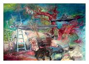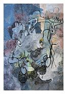 | Julien Malardenti a longuement regardé la peinture baroque et, plus particulièrement, celles des maniéristes et du Tintoret. Elle irrigue ses productions, qu’elles soient en noir et blanc ou en couleur, sur toile ou sur papier. Ses figurations du corps humain, d’animaux, de drapés, de paysages, de natures mortes ou de mobilier ne sont pas des reproductions de ces éléments mais des élaborations d’images qui mêlent réalité, souvenirs et fantasmes. Elles subissent des déformations qui s’affranchissent délibérément des conventions de la représentation et de l’harmonie, au seul profit de l’incarnation de ses états émotionnels, de son expérience plus ou moins cruelle ou désabusée de la vie. La figure de l’homme et l’évocation de son environnement y sont fréquents mais toujours transformés par la leçon des épreuves et sensations du propre corps de l’artiste, passés au crible de règles occultes dont seul il a la clé. Cette combinaison de distanciation et d’appropriation confère à ses images une présence autre, une aura, au sens où Walter Benjamin l’entendait. Des sujets sans intérêt intrinsèque se muent ainsi en acteurs d’un autre-côté-du-miroir irréel, improbable, intouchable, énigmatique… Ses grandes toiles de la série des Oubliés sont emblématiques à cet égard. On y voit un singe observant ou désignant d’une de ses pattes un drapé, le tout dans un paysage dont on ne saurait dire s’il s’agit d’une jungle, d’une friche industrielle ou d’un jardin d’une demeure de la banlieue d’une métropole… À moins qu’il ne s’agisse d’une tapisserie… Peut-être sur un carton de Jean-Baptiste Oudry… Plongeon, dans ses deux versions, en couleurs et en noir et blanc, revisite le mythe d’Icare, magnifiant un minuscule détail de la célèbre composition de Bruegel sur la Chute d’Icare. Julien Malardenti écrit, à ce sujet : « Le musée imaginaire est toujours présent et le souvenir d’un tableau de Bruegel, par exemple, se mélange naturellement au paysage intérieur ; ma peinture n’a de sens que si elle parvient à le faire exister. » N’est-ce pas cela-même l’essence de la création plastique ? |