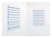| Matière, support, surface, espace, couleur, lumière, ligne droite sont les ingrédients de l’admirable alchimie à laquelle se livre Élissa Marchal. Son travail trouve ses sources chez Tatline, Kandinsky, Reinhardt, Flavin, Judd et beaucoup d’autres mais s’en affranchit pour nous proposer des pièces d’une rare originalité. Elle procède par séries, dont elle essaie d’épuiser toutes les ressources. Après les Sédimentations, les Assemblages et les Structures, elle travaille désormais simultanément sur trois chantiers : les Cadres, les Jalousies et les Horizons. Dans les deux premiers, la couleur est structurée par des compositions géométriques en trois dimensions : rectangles pour les premières, parallèles pour les secondes. Les lignes sont des tasseaux dont les faces sont peintes de couleurs vives, dans un fini soigneux dont Élissa Marchal a le secret et qui leur confère l’aspect de délicates porcelaines. Dans les Cadres, le centre du rectangle est vide, montrant le blanc du mur, lequel n’est plus vraiment blanc puisque les couleurs des faces latérales des tasseaux vibrent, se reflètent et contaminent la surface qui les porte, un peu à la façon dont les néons de Flavin meublent le vide qu’ils délimitent. Le mur, blanc, n’est pas perçu comme tel et la perception colorée varie au cours de la journée ou selon l’angle sous lequel on observe les pièces. Le cadre, habituellement censé cerner une peinture, n’est donc plus qu’un attrape-regard trompeur et se confond avec l’œuvre elle-même. Dans les Jalousies, c’est plutôt à Judd que l’on pense, avec une différence essentielle, cependant : les tasseaux sont tous de même longueur mais d’épaisseurs et d’espacements différents, créant des rythmes subtils. Ici aussi, la couleur se reflète sur la paroi. Elle incite l’observateur à se concentrer sur ce qui se trouve entre les tasseaux – les lamelles de la jalousie, pourrait-on dire – pour se muer en voyeur et tenter de découvrir un intérieur insaisissable. Les Horizons sont en deux dimensions. Deux rectangles de couleurs différentes – contrastées ou voisines – et de dimensions égales sont superposés sur une toile. Le fini est impeccable, lisse, presque réfléchissant… Dans chaque rectangle, l’intensité lumineuse de la couleur décroît quand elle s’approche de leurs bords horizontaux. Un halo lumineux se crée alors à la frontière entre les deux plages, générant, malgré le minimalisme de la démarche de l’artiste, une profondeur quasiment illusionniste. Dans les trois cas, l’artiste, par le biais des vibrations et des interférences colorées, crée un mouvement qui accorde une présence au vide et suggère de nouveaux espaces physiques et mentaux. |