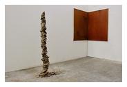 | Les œuvres d’Alexia Chevrollier sont réalisées avec des matériaux bruts que l’artiste ne cherche pas à enjoliver mais plutôt à animer en révélant leurs caractéristiques et qualités essentielles. Elle leur applique un certain nombre d’opérations et de gestes élémentaires, selon des protocoles prédéfinis, mais qui laissent cependant place à l’improvisation et au hasard. La terre crue figure parmi ses matériaux de prédilection. Elle la pétrit pour produire de formes dont on ne saurait dire si elles relèvent du règne minéral, végétal ou animal. Empilées dans des structures verticales instables, elles se muent en colonnes fragiles qui portent en elles les marques de leur fabrication, mais aussi les prémices de leur inéluctable effondrement, annoncé par les évolutions chromatiques de la terre au fur et à mesure de son séchage. L’artiste nous incite à réfléchir sur ce qui distingue une œuvre finie de celle in progress. Elle gomme ainsi la frontière entre atelier et lieu de monstration. Les travaux d’Alexia Chevrollier font aussi écho aux notions d’obsolescence programmée des produits industriels, d’immutabilité des œuvres plastiques – notamment dans ses peintures réalisées avec du sel, de l’eau et de la limaille de fer –, de conservation des productions artistiques… Et, au-delà, de la vanité de toute activité humaine… |