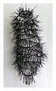 | De sa démarche, Fanny Lavergne écrit : « Quelques insectes morts sous une fenêtre, un lustre qui tremble d’un dernier soubresaut, un sablier qui s’effondre chargé d’humidité et quelques postiches laissés-là par un spectacle qui n’a pas eu lieu habitent mon univers plastique. J’amène le sel, le charbon ou la céramique dans un état de fragilité propice à une érosion ou une catastrophe. Sorties de l’atelier, dans leur confrontation avec le public ou avec le lieu d’exposition, mes sculptures se détériorent parfois, courant indéniablement à leur perte. Je travaille sur ce qui s’écoule : l’eau, le sable, le temps, la vie et que l’on ne peut retenir malgré nos tentatives impuissantes de pérennité face à l’éphémère. Avec humour, je relève cette faiblesse humaine qui fait des choses qui nous entourent des présences immuables. Je collabore avec le temps. Une longue durée d’élaboration accompagne mes mains, mes gestes jusqu’à ce que le temps devienne le partenaire de l’instant, de l’accident ou du non-événement lors de la présentation de mes travaux. Le temps est un médium que j’utilise dans tous ses états, à l’image des matériaux – solides, brûlés, humides, liquides – dont j’éprouve la résistance. Il est une force invisible qui œuvre dans chacune de mes pièces, questionnant la durée d’un regard ou celle d’une disparition. Mes installations s’accompagnent de silence, d’un vide laissé par une perte ou un sacrifice : de curieuses allégories de la mort parfois traitées avec cruauté, non sans ironie. » |