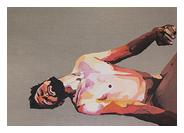 | Laura Zimmermann pratique une peinture sans concession. Ses tableaux exploitent les éléments de l’iconographie populaire de notre temps, qu’elle dévoie en leur conférant une dimension universelle, génératrice, selon les séries, d’angoisse et de malaise ou de tendresse et d’empathie. On se souvient notamment de sa série La violence ordinaire qui représentait des enfants jouant avec des armes de guerre. La brutale sauvagerie de leur exécution révèle ou accentue la violence latente, sous-jacente, mêlée de fragilité, des sujets. Les personnages nous interpellent, nous prennent à partie, nous provoquent en nous fixant d’un regard apostrophant, parfois souligné par un geste tout aussi suggestif. Les scènes les plus anodines peuvent tourner au drame et l’on cherche, désespérément le détail rassurant qui permettrait de dissiper l’incertitude, de faire taire l’angoisse, qu’elle se résolve en catastrophe ou en bonheur. En vain… Sa série Dis seulement une parole et je serai guéri est composée de huit toiles dont la succession donne à voir un corps qui se retourne, s’écrase, se convulse et se replie, au point de perdre ses caractéristiques humaines et rejoindre l’abstraction. Le titre, tiré du rituel de la messe catholique, fait référence à un propos de Gilles Deleuze, dans sa Logique de la sensation : « Tout homme qui souffre est de la viande. […] Le peintre est boucher certes, mais il est dans cette boucherie comme dans une église, avec la viande pour Crucifié. » |