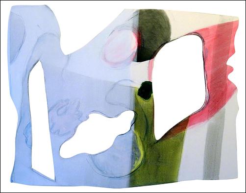 | De ses peintures de la série Alentours, Alain Bouaziz écrit : « Leur conception apparemment aléatoire et ondulante et la quasi-impossibilité de les réaliser sur châssis toilé font qu’elles sont interprétées sur bois. Leurs silhouettes conçues sur une dématérialisation apparente et intuitive du support, expriment ma sensation à la fois physique et sensorielle de constamment traverser des espaces faits de vides fluides ou filant les contours d’écrans furtifs, imprévus et mobiles. Mes peintures esquissent l’expression de ces passages et mon champ visuel peuplé de murs, formes et objets de diverses natures, toujours vus en partie ou durant un temps limité, renouvelés aussi. » Elles évoquent simultanément l’immensité de paysages et la proximité d’objets banals de l’environnement quotidien, récusent toute notion d’échelle et donnent une importance égale aux surfaces peintes et aux vides qui les trouent. Plus généralement, le travail d’Alain Bouaziz s’inscrit dans une réflexion sur ce qu’est la peinture, alors qu’elle est donnée pour morte ou agonisante depuis quelques décennies. |