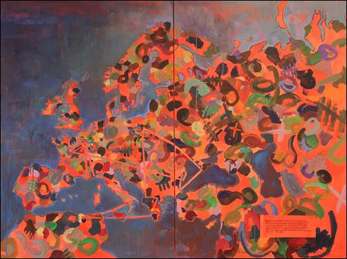 | Alexandra Chauchereau a découvert, dans sa cave, le carnet de guerre de son grand-père paternel, mobilisé pendant la Grande Guerre, notamment sur le front de Woëvre et la butte de Vauquois. Elle est retournée sur les lieux et les a photographiés afin de les peindre en y incorporant, comme dans un palimpseste, les écrits du carnet. Les textes sont reproduits avec sa propre écriture ou celle de son grand-père projetée sur le support. Avec ses mots, la main de l’artiste trace ce que la propre main de son aïeul a tracé il y a cent ans. L’œuvre achevée, le texte peut avoir été partiellement ou totalement recouvert. C’est l’acte d’avoir mêlé les deux écritures qui importe pour elle. Dans ce travail de mémoire, sont donc confrontées deux images de la nature, celle, sous-jacente, de sa destruction par les pilonnages d’artillerie et celle, régénérée, qui l’a remplacée. Une belle métaphore de la capacité de résistance et de régénération de la vie, même lorsqu’elle fait l’objet de destructions massives. |