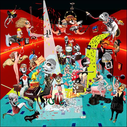 | Depuis de nombreuses années, Didier Gianella pratique le collage numérique. Sa banque de données visuelles inclut des habituelles images de notre société de consommation mais aussi une multitude de personnages dans les attitudes les plus diverses. Ses compositions minutieuses sont joyeusement iconoclastes, bousculant les conventions, chahutant les règles du bon sens et de la bienséance. S’érigeant en manifestes, elles véhiculent des slogans et des messages qui vont à contre-courant de la profusion des signes qui nous submergent au quotidien. Elles se font volontiers contestataires et revendicatives. L’univers poétique et ludique de Didier Gianella préfigure un au-delà de la modernité qui ne renie cependant pas celui des surréalistes, notamment de Delvaux, Ernst, Magritte et Trouille, ni le monde des peintres dits naïfs ou celui de l’illustration de fables pour les enfants. |