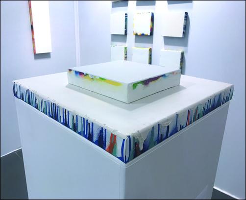 | Il y a quelques années, nous avions présenté les grandes bâches peintes de Kilat sur des thèmes à l’acuité ravageuse. Dégoûté par la figuration et par la narration, l’artiste a désormais abandonné ce registre pour développer ce qu’il nomme, non sans un brin de dérision, le tranchisme… Dans la descendance des artistes de Support/Surfaces, Kilat décide de laisser la surface de la toile vierge ou badigeonnée en blanc, et de ne peindre que les tranches de son châssis. Le spectateur, initialement désarçonné par ce qu’il voit, commence par concevoir la présence d’une image qui aurait disparu pour ne laisser que des traces… Une observation un peu plus poussée révèle l’absence de couverture d’une couche sous-jacente. Le blanc de la surface est bien immaculé… Il faut donc admettre qu’il y a une œuvre mais qu’elle ne se situe pas là où on s’attend à la trouver. Il y a eu déplacement, migration, passage à la frontière, aux limites… Dans ce processus, l’artiste nous révèle la profondeur, l’épaisseur d’une peinture dérobée au regard, comme la part oubliée de l’œuvre, un hors-champ relégué sur le chant du châssis… |