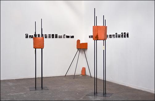 | Les thèmes de prédilection de la jeune Alexane Morin sont l’histoire, l’espace, l’architecture, la ville, le passage de l’ancien au nouveau, la construction, la destruction, la reconstruction, le déplacement de la forme… Elle les exprime à travers la sculpture, l’installation, la photographie et le dessin. Son travail s’appuie sur la mise en tension de rapports contradictoires, de forces opposées entre les éléments, par exemple dans le recours à des matériaux fragiles, comme la cire ou la faïence, dans des registres formels se référant à la stabilité de l’architecture. On le constate dans sa série Les témoins, dans laquelle de fragiles cubes en céramique, rouges comme de la brique, sont suspendus en l’air par de solides piètements en acier. Alexane Morin se livre à un processus de collecte et d’archivage d’images d’environnements citadins voués à la destruction ou à la disparition. Selon ses propres mots, elle use du passage d’une chose à une autre, d’un décalage entre un état stable des éléments en présence et la possibilité d’une mise en place à venir. En témoigne sa série des Stockages, tirages photographiques, en noir et blanc, de scènes urbaines en voie de disparition sur de délicats blocs de cire. |
