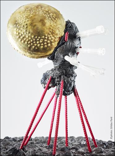 | Dominique Stutz est fascinée par les micro-organismes – bactéries, planaires, amibes, champignons ou algues microscopiques, virus…– observés au microscope électronique. Elle en admire la variété des structures, des formes, des surfaces, le foisonnement des couleurs... Démesurément agrandis, ces organismes, invisibles à l’œil nu, donnent naissance à de grandes céramiques en grès émaillés, aux couleurs chatoyantes, aux formes parfois étranges mais toujours séduisantes. En regardant ces pièces, on en vient à oublier le caractère potentiellement dangereux de certaines de ces formes primitives. Le spectateur est invité à y découvrir le point de départ d’un univers en gestation, les prémices d’un développement, d’une évolution, de la vie… Il en vient à les considérer non pas comme des menaces mais comme une célébration du vivant, une étape initiale d’un cycle de phases interrompues de germination, d’épanouissement et de maturité. Un hymne à la liberté, une occasion de réjouissance et de célébration du vivant… |