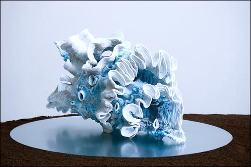 | Dans ses œuvres en volume et dans ses dessins, Jonathan Bablon met en évidence l’hybridité de nos vies, assemblages de vivant et d’inerte, de minéral, de végétal et d’animal, de naturel et de technologique… Il en résulte des objets fantaisistes, des mutants dont les couleurs chatoyantes nous font oublier la monstruosité intrinsèque. On en vient même à chercher quelle pourrait être l’utilité de ces choses si séduisantes dont l’inefficacité est pourtant patente. Cette forme d’indéterminisme sollicite le spectateur, invité à prendre position dans un débat sur la place du vivant dans un monde investi par la technique, sur son futur et sur la place qui lui sera réservée. Au fil de ses propositions, on découvrira des fragments de récifs coralliens, en plâtre ou en céramique couleur de guimauve, des coupes cytologiques de tissus dont on ne sait s’ils procèdent de l’animal ou du végétal, du réel ou du fantasmé, des relevés géologiques dans lesquels les racines des arbres se muent insensiblement en canalisations en matière plastique, des tomates génétiquement modifiées à des fins productivistes, des cages thoraciques transformées en cœurs de centrales nucléaires, de la viande produite in vitro… Cette fantaisie apparemment débridée, se présentant sous des couleurs et des mises en scène ludiques et racoleuses, nous dérange. Elle suscite une profonde interrogation sur la vanité des activités sociales, sur l’avenir de l’humain dans un monde en cours de déshumanisation, sur l’inexorable transfert du vivant et du pensant vers une mécanisation à laquelle l’Homme a délégué les derniers restes de sa liberté individuelle. Jonathan Bablon se défend cependant d’une vision trop pessimiste de notre avenir quand il déclare : « mon univers est imprégné d’une tension métaphysique qui invite à percevoir, de manière sensible, l’humain s’intégrer à la nature par la technologie. » Espérons que c’est ce point de vue qui prévaudra… |