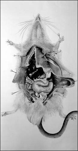 | Les dessins hyperréalistes au pastel sec de Constance Beltig sont de grandes dimensions : 200 x 100 cm. Ils sont réalisés à partir de clichés photographiques, projetés à l’épiscope sur la feuille de papier. Le processus de distanciation est donc poussé à l’extrême : ce ne sont pas des dessins d’après modèle, mais des copies, faites à la main, de photographies, produites électroniquement, de sujets réels. Comme l’artiste le déclare : « il ne s’agit pas de rendre compte de la réalité d’un corps vivant mais de celle d’une image électronique, une reproduction fidèle du réfèrent immatériel, lui-même fidèle à la réalité. » On découvrira, sur les feuilles de Constance Beltig, des images agrandies à l’échelle humaine, celle du spectateur. Ces grandes images posent la question de la distance entre spectateur et sujet. Elles sont empruntées à des planches d’encyclopédies naturalistes (tortue, mouche…), de manuel de biologie (dissection d’une souris…), d’un nouveau-né criant dont le cordon ombilical n’a pas encore été sectionné… Mais on y voit aussi des personnages, grandeur nature, saisis dans des attitudes instantanées, parfois instables, loin de toute velléité de prendre la pose. Dans ce processus de rematérialisation d’un sujet en recourant à des méthodes lentes, minutieuses, l’artiste pose la question de la raison d’être de la figuration plastique. Il n’est plus question de cette aura benjaminienne et, pourtant, il ne s’agit pas de reproductibilité technique car le dessin est unique Ce qui demeure, c’est, avant tout, la trace d’un geste artisanal, méticuleux dont la finalité demeure incertaine au premier abord. Constance Beltig considère que ses dessins sont des sortes de réparations d’une dette occulte, une projection de son propre corps réincarné sous un aspect autre ou dans des postures improbables, la projection de son intériorité dans des concrétisations palpables mais fragiles comme la volatile pulvérulence de la poudre de pastel. |