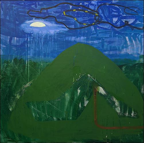 | Corinne Jullien nous propose un univers apparemment inoffensif, évocateur de contes et de légendes, dans les couleurs acidulées, empruntant les tracés faussement maladroits des illustrations pour la littérature enfantine. Mais tout ceci n’est qu’apparence, couverture pour un propos plus subversif. Son univers est d’une inquiétante familiarité, proche de l’inquiétante étrangeté, l’Unheimlichkeit freudienne. L’artiste renvoie au spectateur le reflet de sa propre histoire, image d’abord dérangeante puis qui, une fois identifiée, devient sienne. La mise à distance est opérée par le recours à de grands formats, apparemment incompatibles avec l’intimité des scènes figurées, et par l’imposante présence du personnage principal, rigoureusement centré. Mais ceci n’est qu’un leurre, un piège trompeur, car quiconque se hasarde à entrer dans ce travail est immédiatement happé par son propre point de vue, obligé de mettre son imagination à contribution pour combler les lacunes spatiales et narratives, de plaquer sa propre mythologie sur celle proposée par l’artiste. Corinne Jullien renchérit : « Malgré des codes picturaux empruntés à l’univers enfantin, mon travail glisse dans le domaine figuré de la psychanalyse. L’acte de peindre est, pour moi, une façon de poser le cadre pour regarder se débattre dans un espace fini, un quelque chose d’indéfini, d’indéterminé… Les sujets que je peins, sont en devenir, et opèrent sans cesse des mouvements de retrait, d’effacement, de mutation. Comme scannés dans la recherche qu’ils mènent de leur propre individualité… La dialectique du conte tend délibérément vers l’expression de mes obsessions personnelles. Figures errantes qui déambulent entre ciel et terre, et, qui l’espace d’un instant, s’arrêtent pour nous regarder. Des hommes qui errent, et des maisons qui respirent, teintées par l’âme de ceux qui les habitent ou les fuient. Toute une faune qui semble évoluer avec la lente détermination du somnambule dans un monde en perpétuel mouvement. Tentation piquante d’apprivoiser le revers du visible. » |