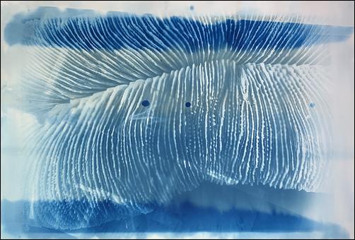 | Brigit Ber, diplômée en arts appliqués, met en œuvre une multitude de techniques de création et de reproduction d’images, fixes ou mobiles. Pour ses images fixes, elle procède elle-même au tirage, souvent en exemplaire unique, de photographies prises sur le vif, recourant au procédé artisanal du cyanotype. Elle accepte – privilégie même – les accidents dans ses manipulations et leurs effets souvent déconcertants, au point de parfois remettre en cause son projet initial. Ses sujets de prédilection sont tirés de la nature, minérale, végétale ou animale, mais dans des cadrages et des rendus qui en modifient la perception, forçant le spectateur à plonger dans l’image résultante pour tenter d’en identifier le modèle : fleurs, os de seiche, racines, branches, mégalithes, algues, étoiles de mer, coquillages, coraux, oursins… Le doute subsiste cependant et d’autres interprétations, imprévisibles, peuvent s’imposer. Chez Brigit Ber, le geste et le processus créateurs prennent le pas sur l’image résultante et sur son objet, ouvrant grand la porte aux hasards de circonstance. Ce qui est donc donné à voir est donc bien plus qu’une simple image. C’est la traduction d’une expérience vitale et de ses aléas, imbriquant des temporalités, des lieux et des procédés d’une grande diversité. |