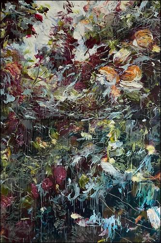 | Après s’être intéressée au corps pendant de longues années, Isabel Lemaire emprunte désormais ses thèmes à la Nature dans ce qu’elle a de plus incontrôlé, notamment dans les vastes étendues d’herbes folles… Ses toiles, de très grandes dimensions, sont peintes à l’acrylique, à l’huile, à l’encre et/ou à la cire en s’inspirant essentiellement de son jardin. Elles ont la fulgurance d’une intense – et parfois violente – gestualité, mettant en évidence une tension presque insoutenable entre force expressive et fragilité d’une image intérieure, entre immédiateté du geste et permanence de la vision qu’elles proposent d’une Nature pérenne, entre infiniment grand et infiniment petit… Elles portent comme titre le jour et l’heure de leur achèvement et, plus récemment, un mot ou une phrase en rapport avec la musique que l’artiste écoutait pendant leur réalisation. On pourrait oser un parallèle avec la peinture de Jackson Pollock ou de Joan Mitchell, dans leur généreuse expressivité, mais ce serait une erreur car la peinture d’Isabel Lemaire est farouchement figurative. C’est plutôt du côté du dernier Monet, celui des Nymphéas, qu’il faudrait chercher son inspiration et son modèle… Isabel Lemaire a relevé le difficile challenge d’occuper l’escalier et le pignon du Bastille Design Center, réservant un choc visuel aux visiteurs dès leur entrée dans les lieux… |